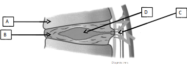 Suite à cette approche par le travail, les techniciens de maintenance sont vus par le médecin du travail qui leur explique le fonctionnement de la colonne vertébrale et plus particulièrement de l’affection dont ils souffrent : le lumbago.Légender le schéma suivant sur le lumbago en attribuant un terme à chaque lettre A, B, C et D.