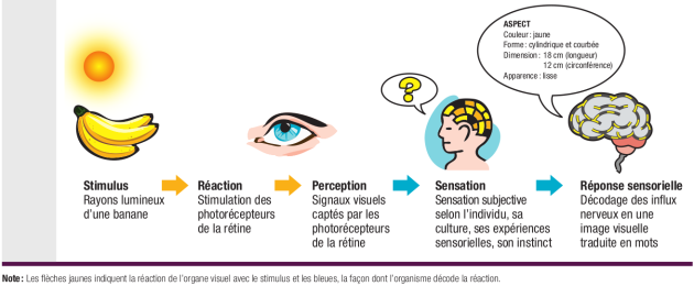 Notre œil remarque, en observant un produit, sa couleur, sa forme, sa dimension et son apparence ; ce sont les quatre composantes de l'aspect.