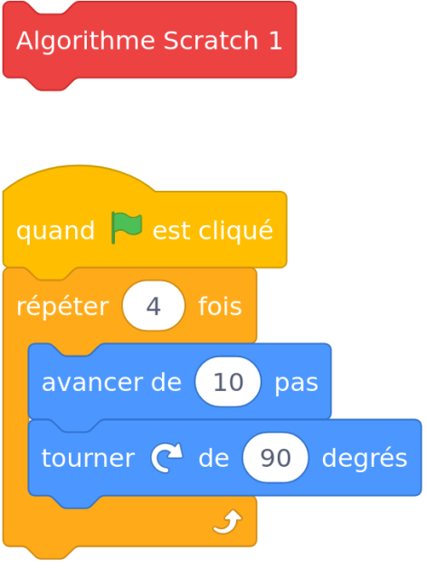 La figure 1 correspond à l'algorithme GéoTortue 1 et à l'algorithme Scratch 1 ;